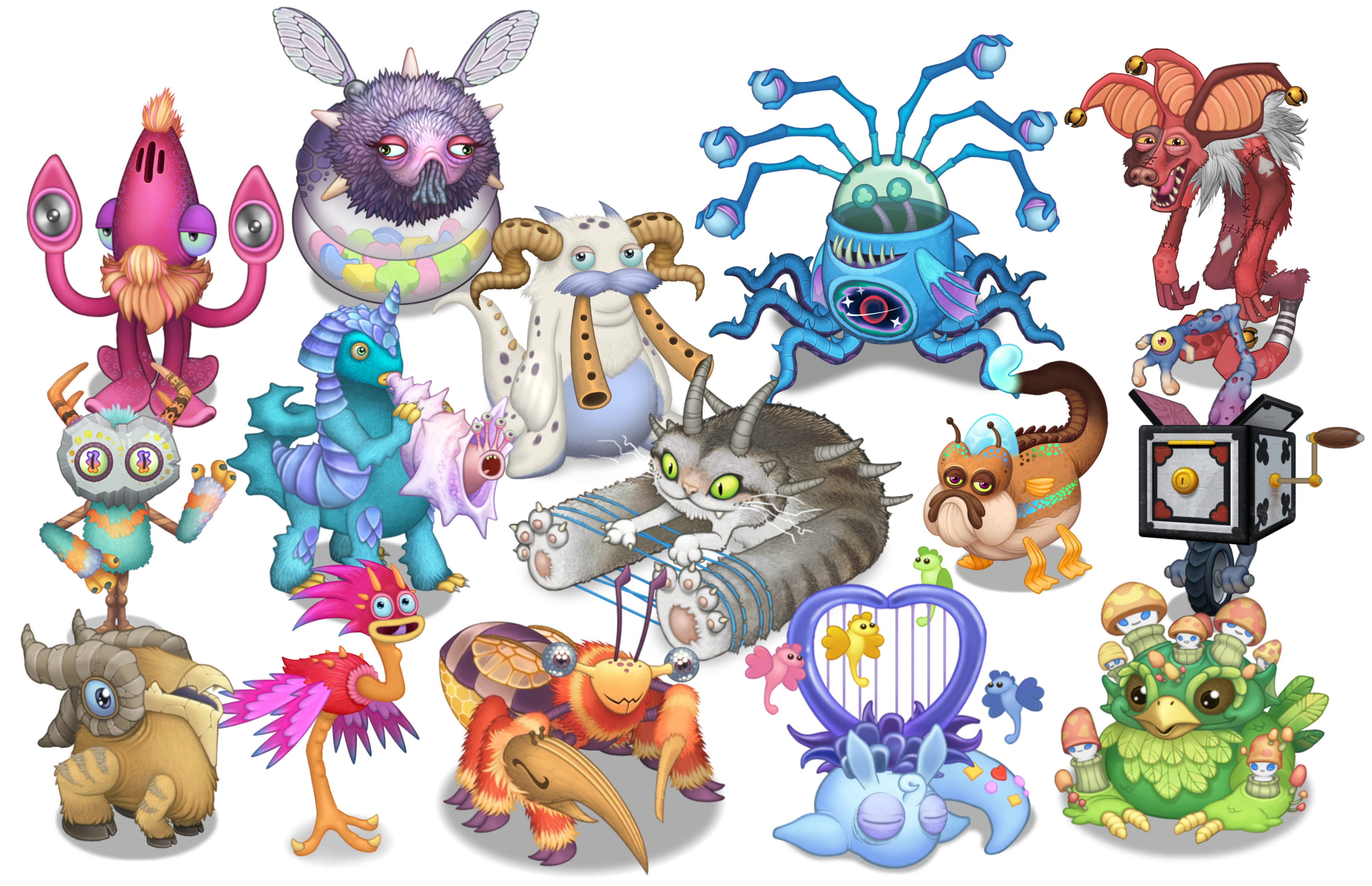 Mythical | Mythical Monsters | ![]() G’joob, Strombonin, Yawstrich, Anglow, Hyehehe, Buzzinga, and Cherubble |